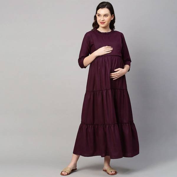 0 review(s) for "Women Purple Solid Maternity Nursing Empire Midi Sustainable Dress"